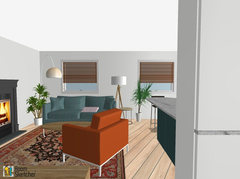Proposed open plan kitchen-living. Large bathroom divided in two to create ensuite for master bed.